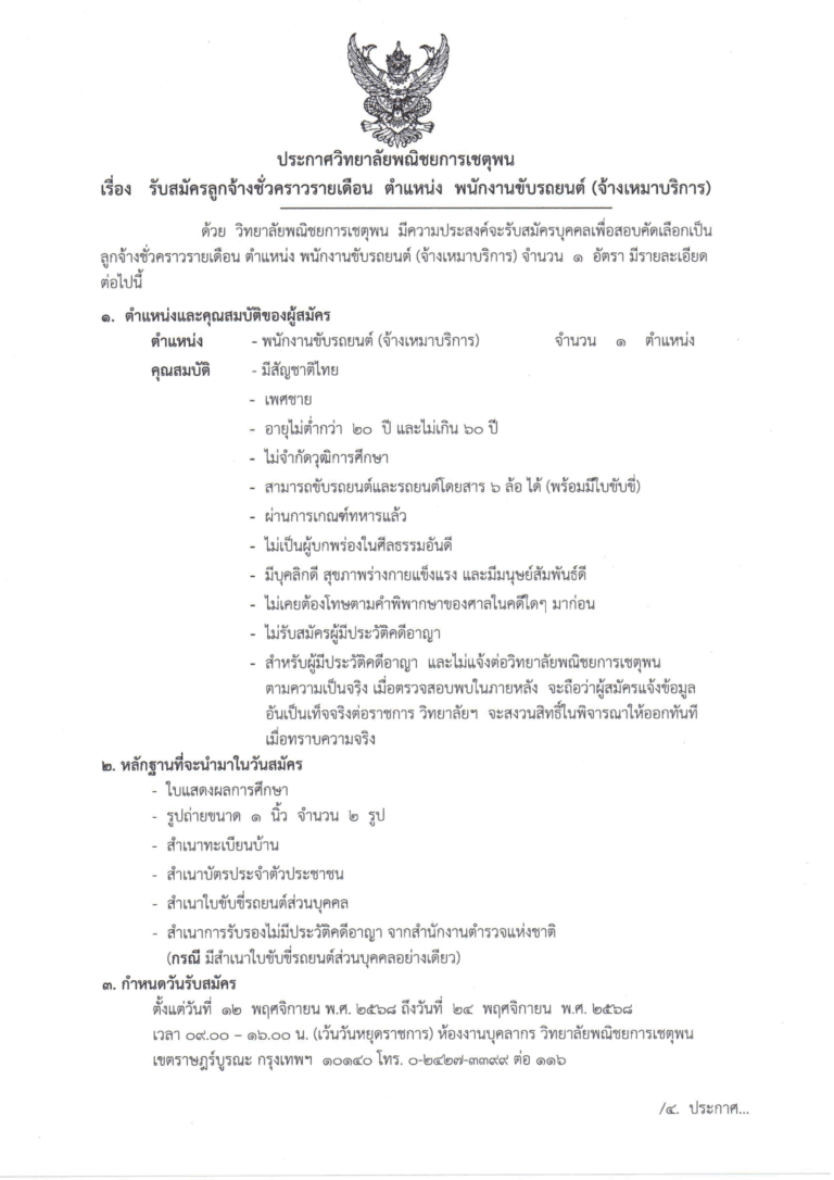 รับสมัครลูกจ้างชั่วคราวรายเดือน ตำแหน่ง พนักงานขับรถยนต์ (จ้างเหมาบริการ)