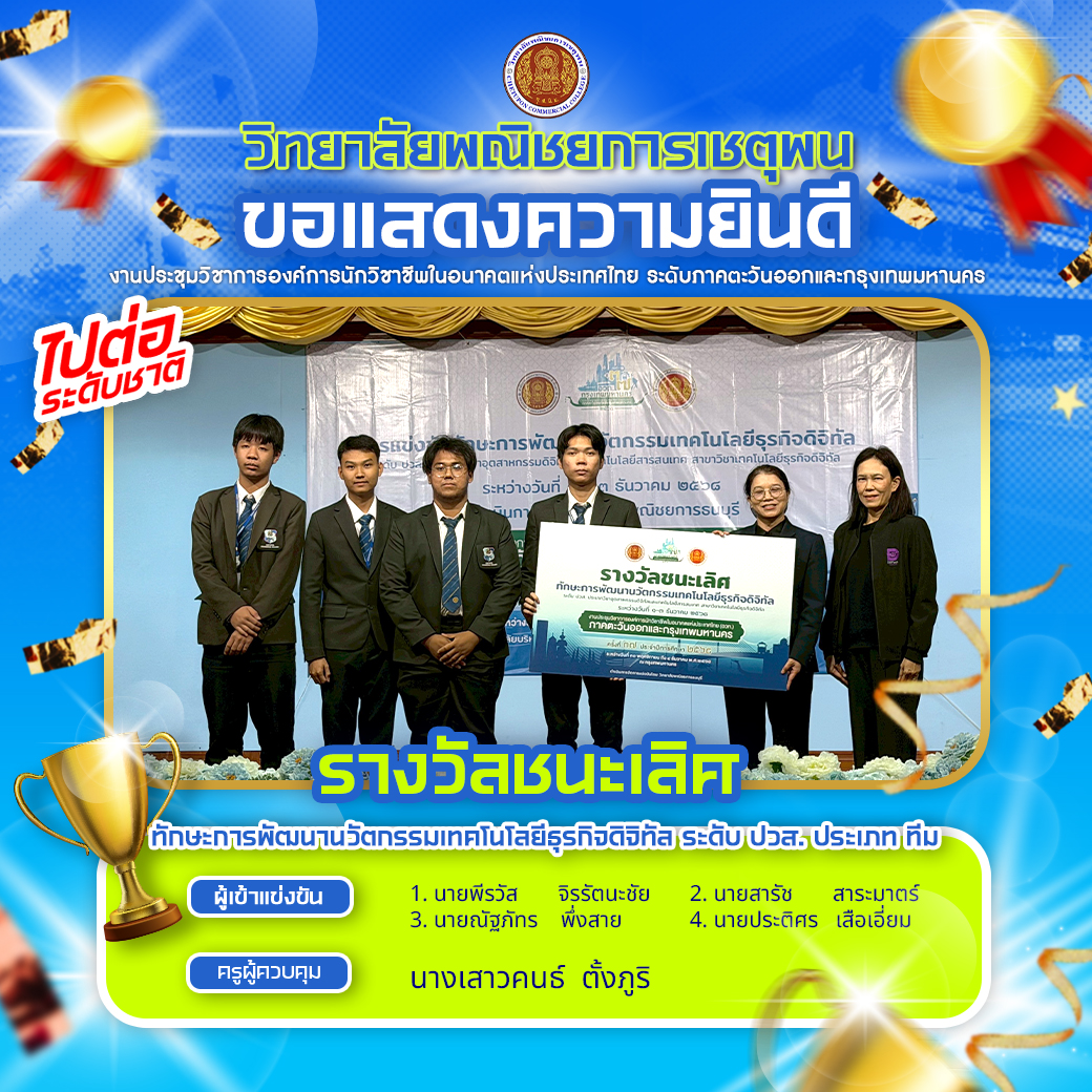 รางวัลชนะเลิศการแข่งขันทักษะการพัฒนานวัตกรรมเทคโนโลยีธุรกิจดิจิทัล ระดับ ปวส. ประเภท ทีม