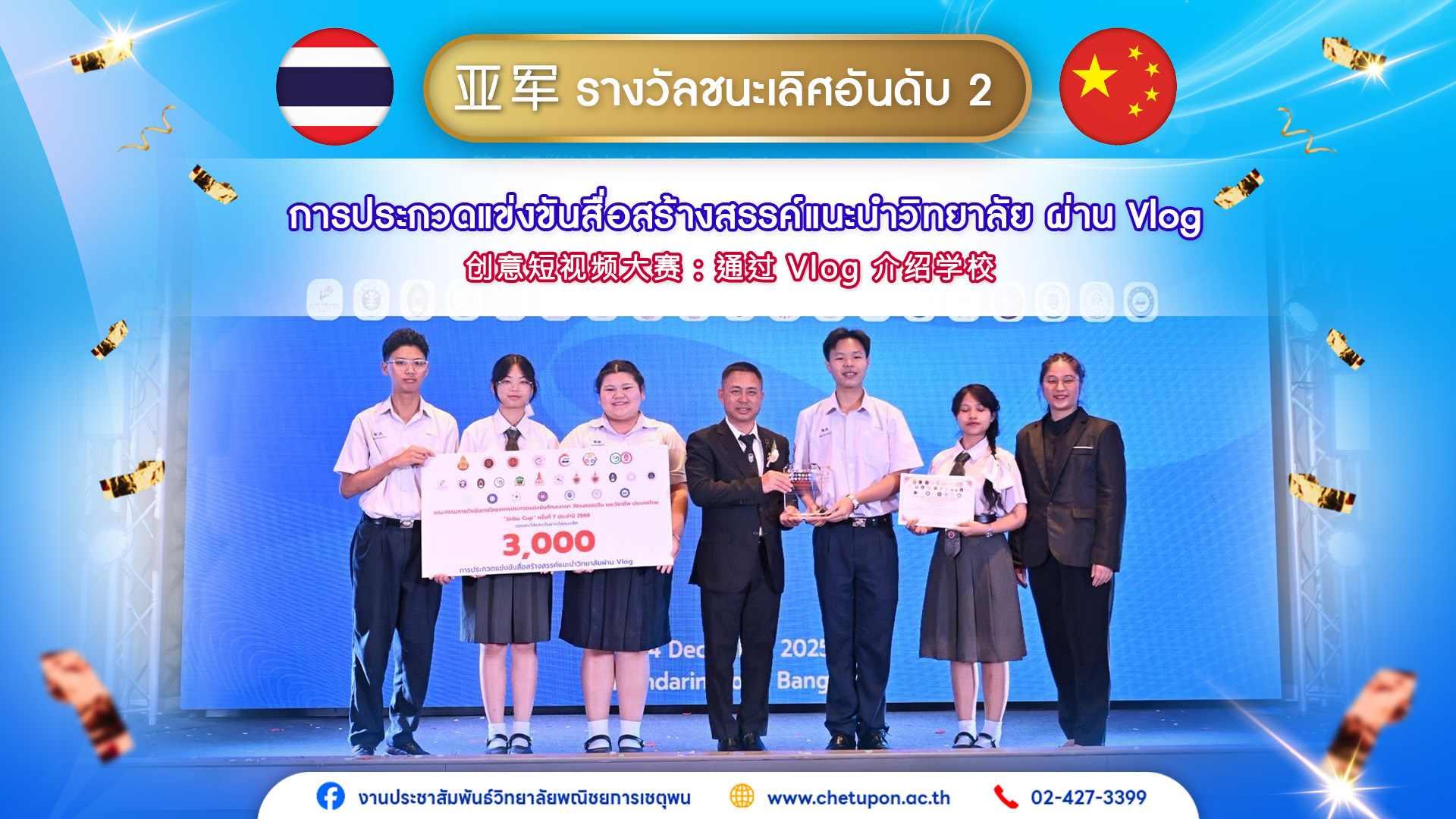 รางวัลชนะเลิศอันดับ 2 (亚军)จากกิจกรรม โครงการประกวดแข่งขันทักษะภาษา วัฒนธรรมจีน