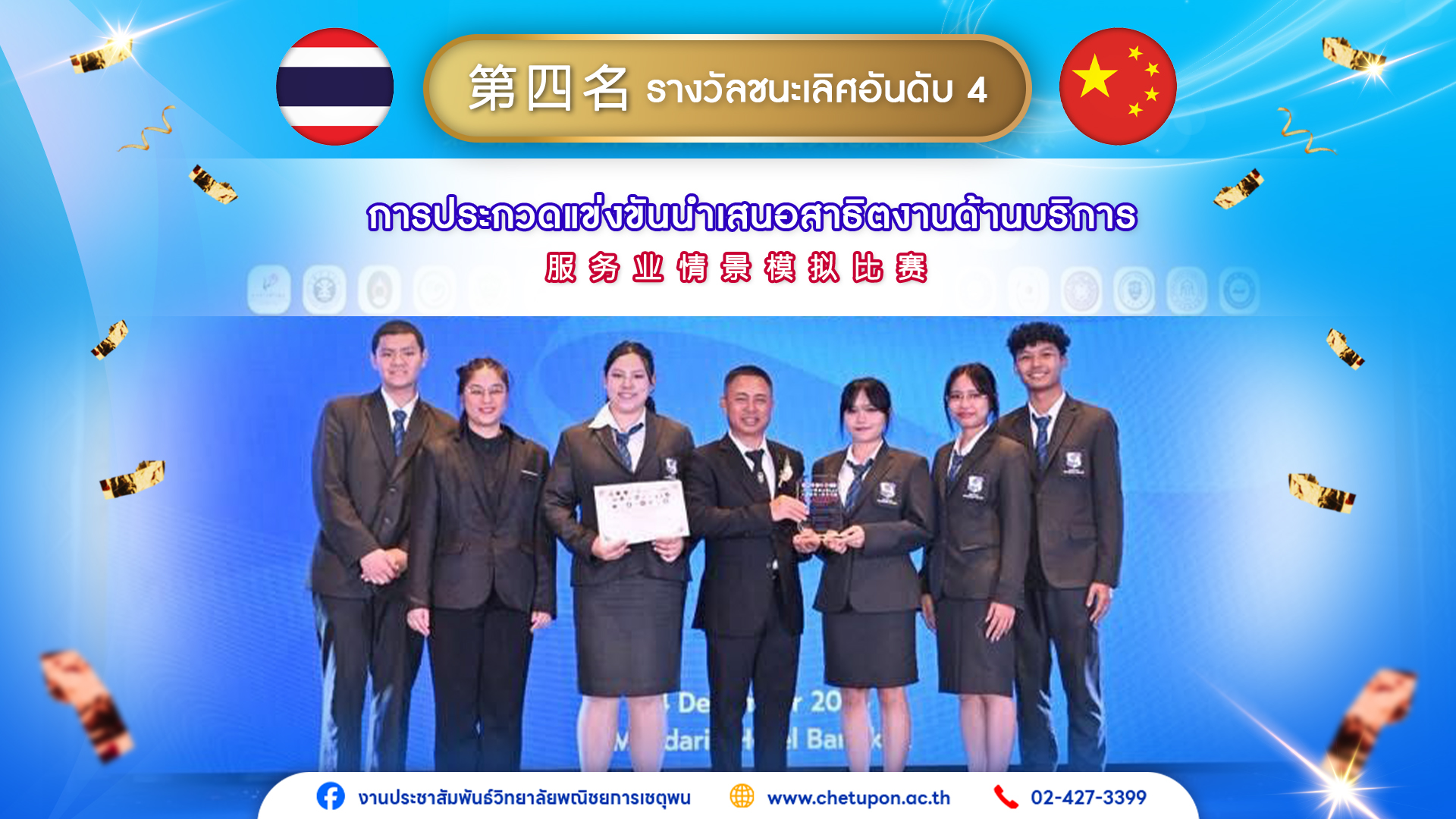 รางวัลชนะเลิศอันดับ 4 จากกิจกรรม โครงการประกวดแข่งขันทักษะภาษา วัฒนธรรมจีน