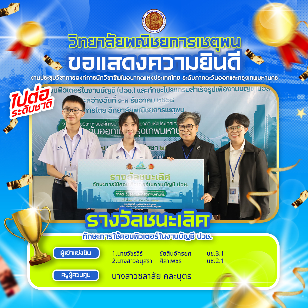 การแข่งขันทักษะทักษะโปรแกรมสำเร็จรูปเพื่องานบัญชี ปวส. ในงานประชุมวิชาการองค์การนักวิชาชีพในอนาคตแห่งประเทศไทย ระดับภาคตะวันออกและกรุงเทพมหานคร